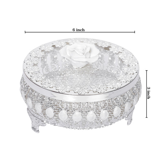 Flower Nob Round Box - White